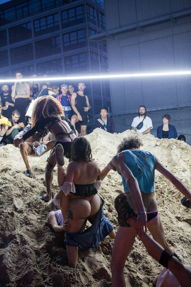 Am 14. Juni wird eine Baustelle am Charlottenburger Spreeufer zur Bühne für das internationale Tanzkollektiv Young Boy Dancing Group. Trotz Berliner Wohnungsnot wird das ehemalige Industriegebiet im Herzen Berlins nicht für bezahlbaren Wohnraum freigegeben, sondern muss mit Bürogebäuden bebaut werden. Das Kollektiv Young Boy Dancing Group lernte sich ursprünglich in einem Martha Graham Sommer-Workshop kennen und arbeitet seit 2014 international mit wechselnder Besetzung. Mit ihren teils improvisierten, teils aus vergangenen Choreographien zusammengesetzten, modulartig aufgebauten Performances hinterfragen sie gesellschaftliche Konventionen und heteronormative Vorstellungen von Sexualität.