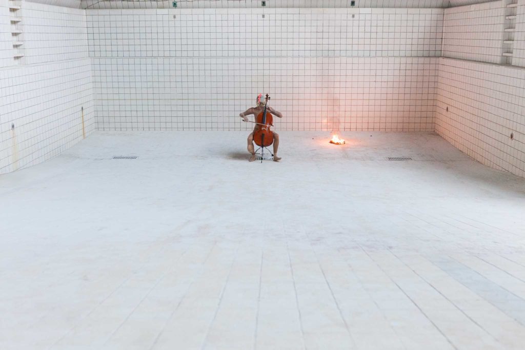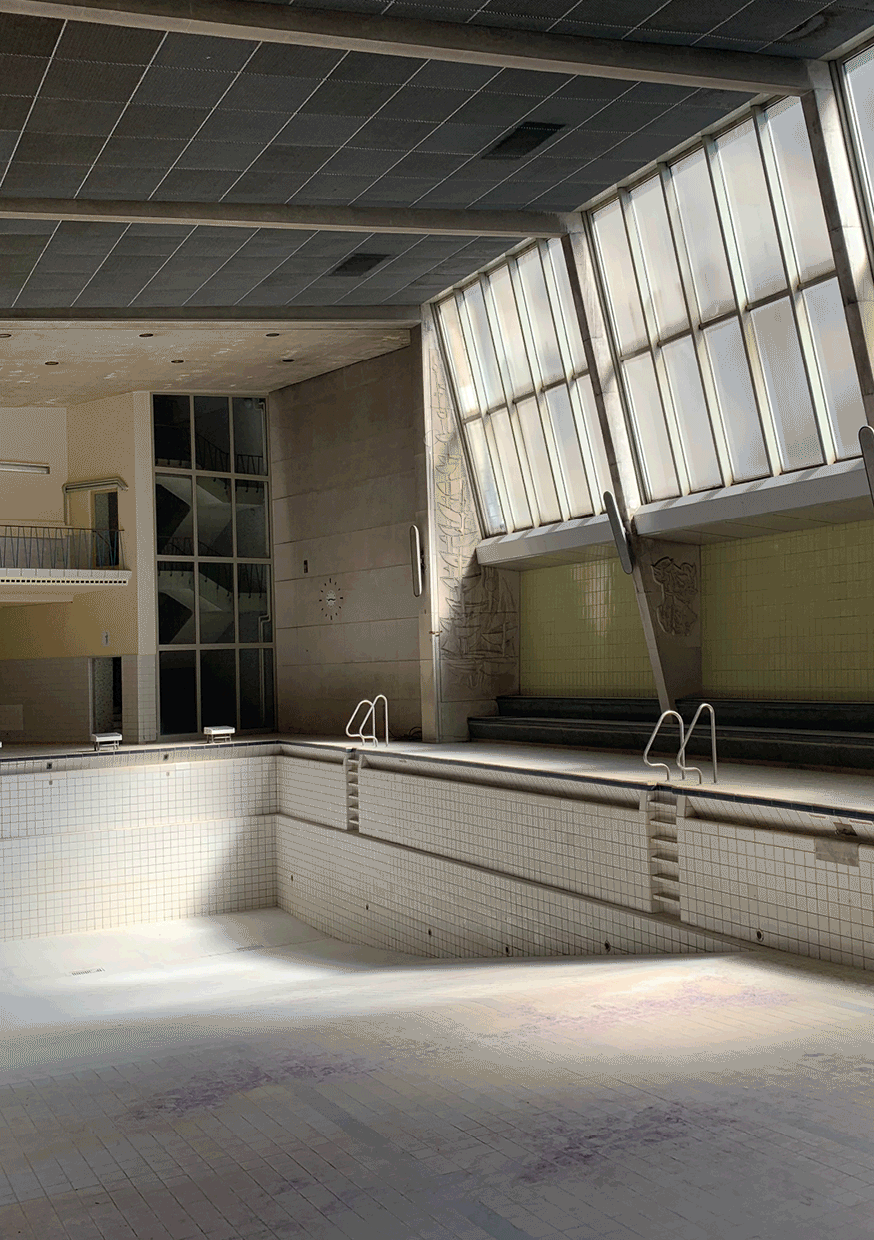 Improvisation will be the recurring theme through the artistic performances at the historic Baerwaldbad. The architecturally unique building of the former public swimming pool has been vacant since its closing in 2017 and is gradually deteriorating. Its property situation and future are currently unclear as the district Friedrichshain-Kreuzberg is not able to provide the necessary maintenance costs. As a result, Berlin is lacking yet another public bath. Josh Johnson, dancer and former member of the Forsythe Company, and Patrick Belaga, composer and cellist, have developed a piece from within that moment of uncertainty. The performance at Baerwaldbad will be an ongoing discussion of the ritual of the live-performance, thereby moving between piety and impiety, reverence and irreverence towards choreography as a planned sequence of movements and notes. The artists engage in improvisation as a moment of unpredictability. This moment will be mirrored vocally and gesturally through the contributions by Ensemble Klimax, the youth choir of the Friedrichshain-Kreuzberg music school, directed by Ann-Kristin Mayr, Cyril Baldy’s duet performance, and Thilo Garus’ monologue. Eventually, Graziano Capitta’s candle installation refers back to ‘piety’ as a quality of being religious or reverent.
