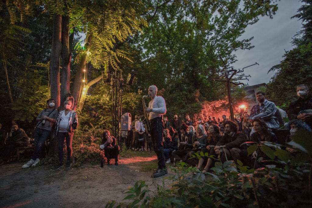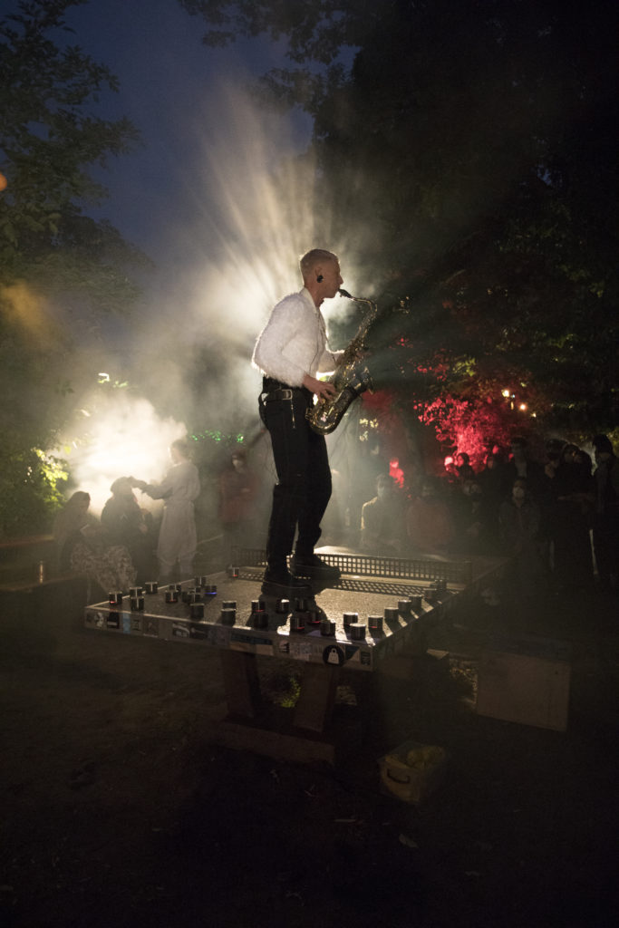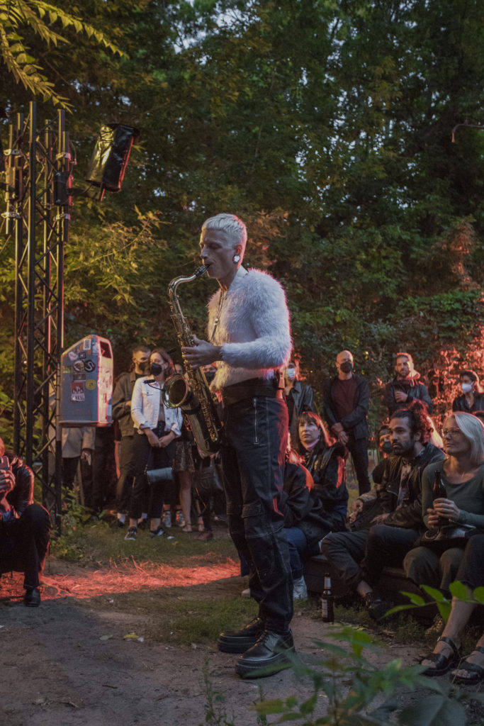 Bendik Giske and Wojtek Blecharz: RHIZOME for saxophone and 160 wireless speakers, DISAPPEARING BERLIN produced by Schinkel Pavillon, ://about blank, Berlin, 25.08.2021, Foto: Hyesoo Chung