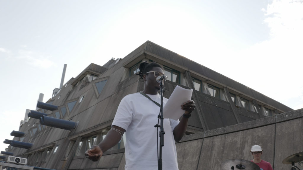 The “Mouse Bunker” designed by Gerd and Magdalena Hänska, is one of the most striking examples of Brutalist architecture, the name of which derives from the French “béton brut” (engl. “raw concrete”). Julianknxx’s interest in Brutalist buildings in London such as Grenfell Tower (which burnt down in 2017) or Trellick Tower is situated in his knowledge of the alienation of Black bodies from the life-giving potency of the earth in the countries they originally left in order to come to the UK. He sees these buildings as constructed “dead spaces” due to their primary use of concrete as a “dead material”, that is hostile to any healthy life. The history of Brutalist architecture in the UK is rooted in and mustn’t be seen separated from the struggles of immigrant families living in these tower blocks and social housing that the government neglected in the course of its political-economic policies of austerity.