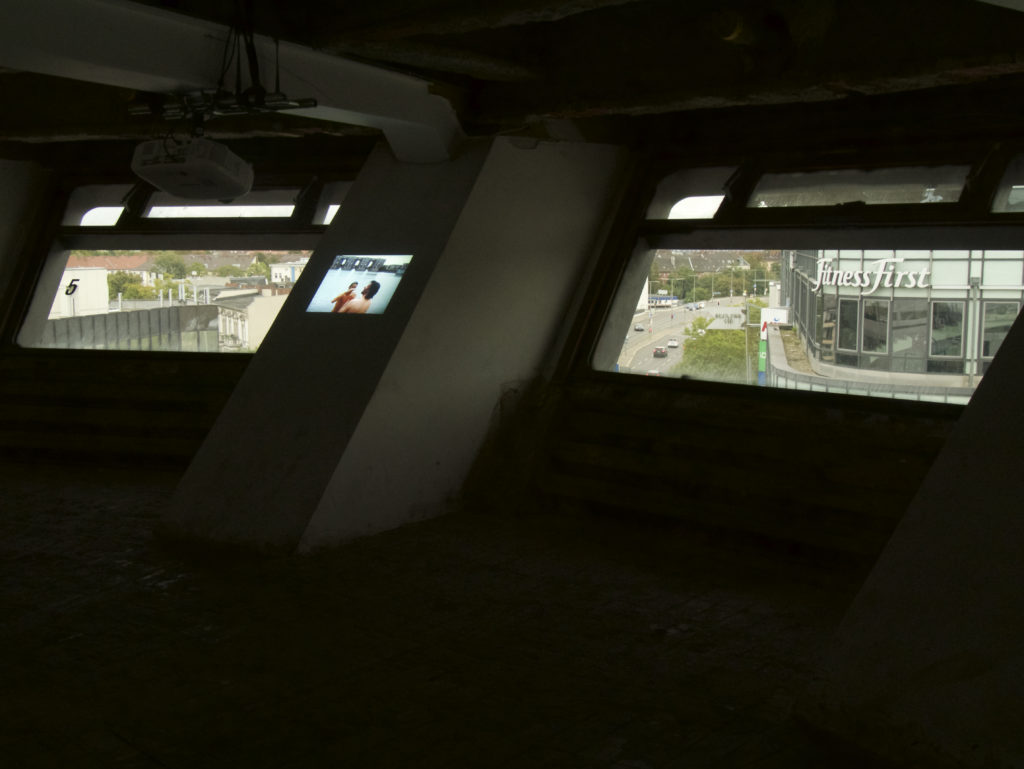 DISAPPEARING BERLIN x Reference Studios: Bierpinsel, Video installation by Cyprien Gaillard, 'The Lake Arches' (2007), Berlin, September 2021, Foto: Marie-Therese Bruglacher