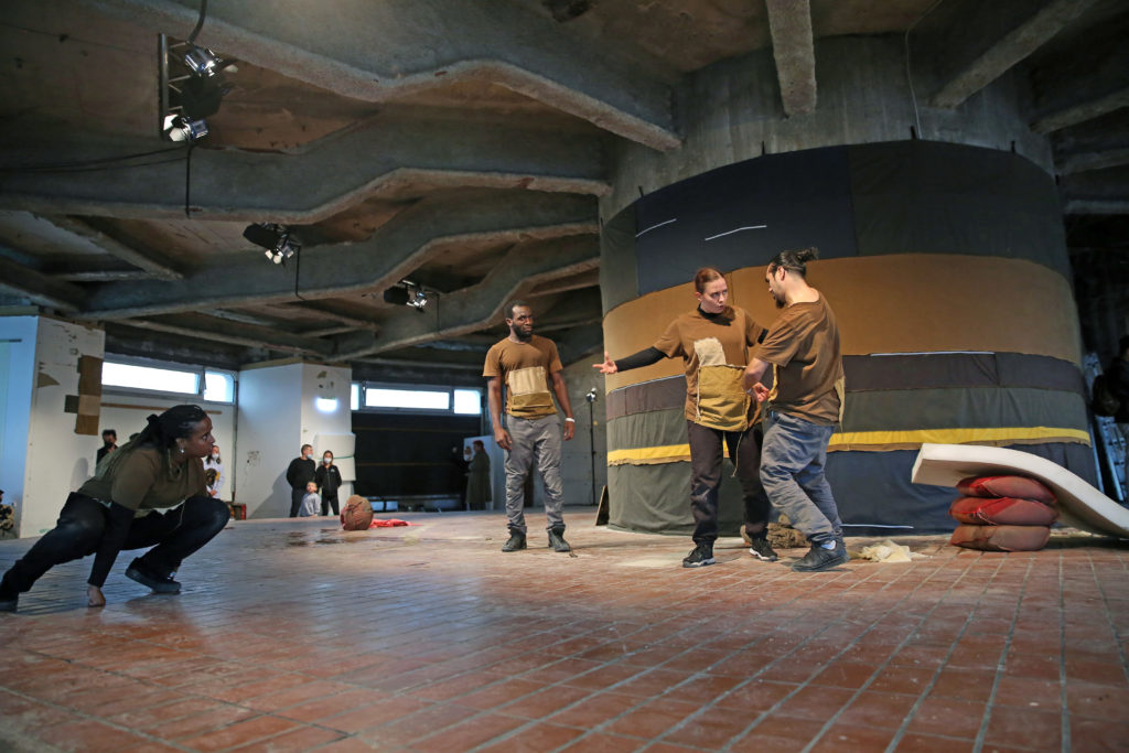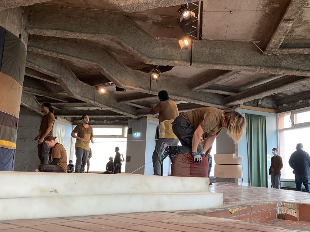 The performance takes place on the parking lot next to a former paper mill which will be demolished this summer. One of the oldest building complexes in the area, the historic brick building from the 1790s will be replaced by yet another block of high-priced office and residential buildings that now shape the area. Besides this, the venue holds various personal memories for DISAPPEARING BERLIN. Until 2018, the Schinkel Pavillon studio and multiple other artist studios were located here. Further, in the summer of 2019, one of the first DISAPPEARING BERLIN performances with Young Boy Dancing Group transformed the sand hills of the neighboring construction site into an apocalyptic performance ground.