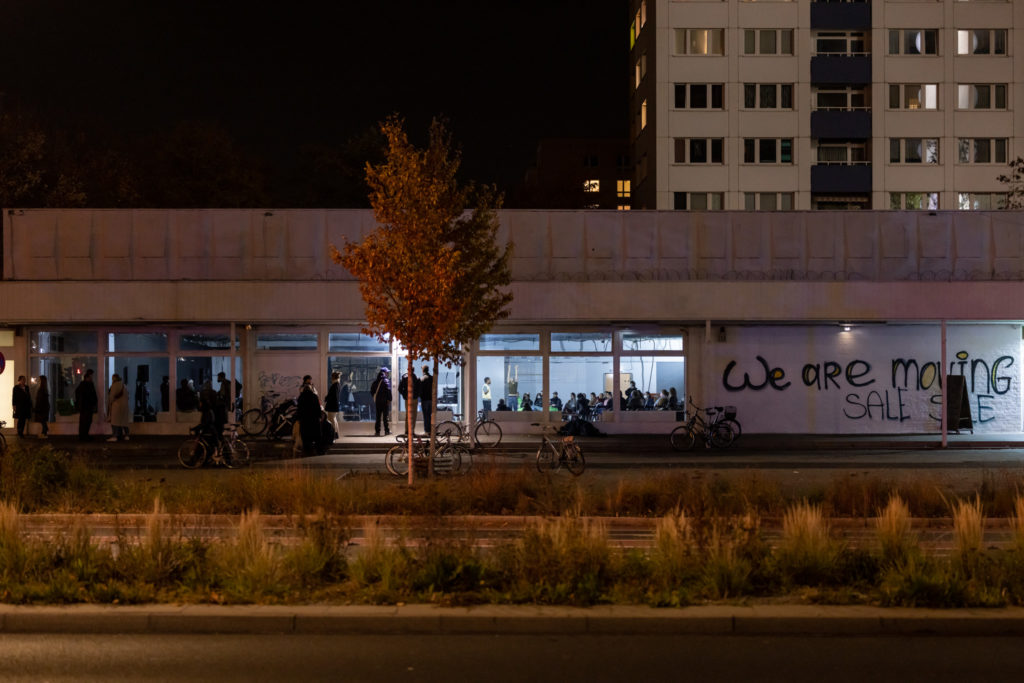 With its hybrid structure as bar, project and performance space, Max Pitegoff and Calla Henkel have been questioning the hunger and expectation for an ever-evolving quantity of new and alternative spaces in the city, and therewith extend their longstanding investigation into the production of socio-cultural spaces. TV Bar understands itself as a stage in continuous metamorphosis; DISAPPEARING BERLIN too grasps the whole city, its iconic architectures as well as its rapidly changing and disappearing spaces, as a stage to be temporarily transformed by performative and sonic experiences.