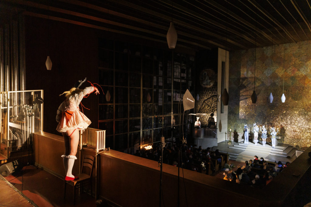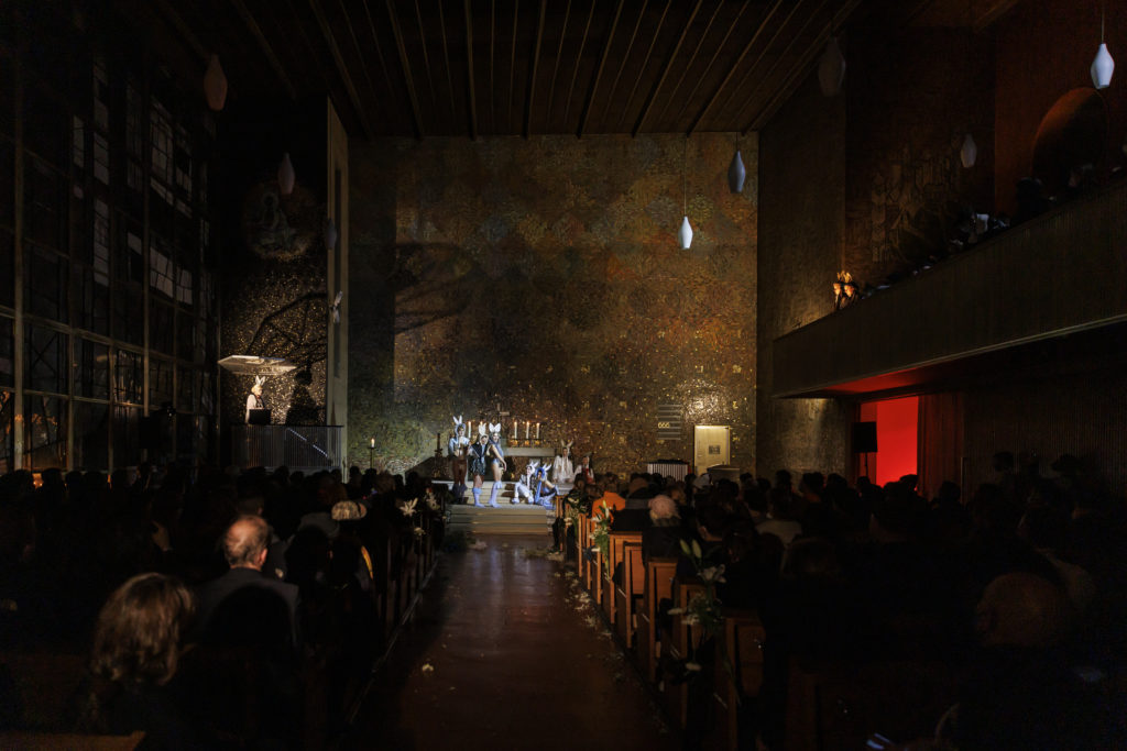 DISAPPEARING BERLIN, Leila Hekmat, Il Matrimonio di Immacolata, Kaiser-Friedrich-Gedächtniskirche, Berlin, 25 & 26 November 2021, Photo: Frank Sperling © The artist and Schinkel Pavillon. Courtesy of Galerie Isabella Bortolozzi.