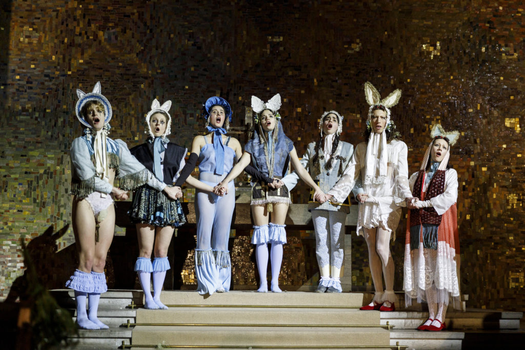 The music, a combination of original compositions by Roman Ole and Roman Lemberg and rearrangements of Mozart, enhances the ritualistic character of this ceremony. We find ourselves made into bizarre witnesses to a union, confronted with the question of whether and what to believe…